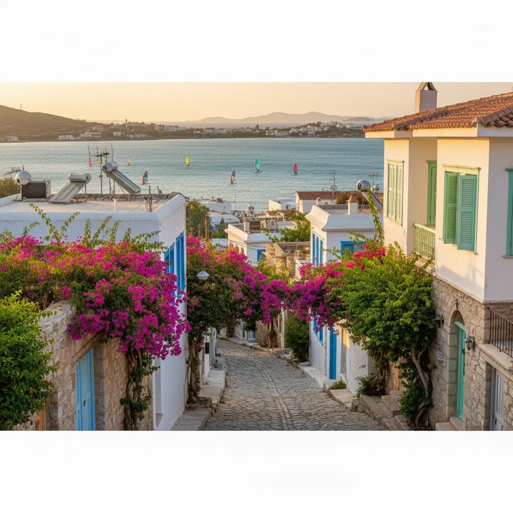 Arrive early during peak season and bring sun protection—Aegean summers are sunny and warm. Many visitors split their holiday days between beach time and town life.